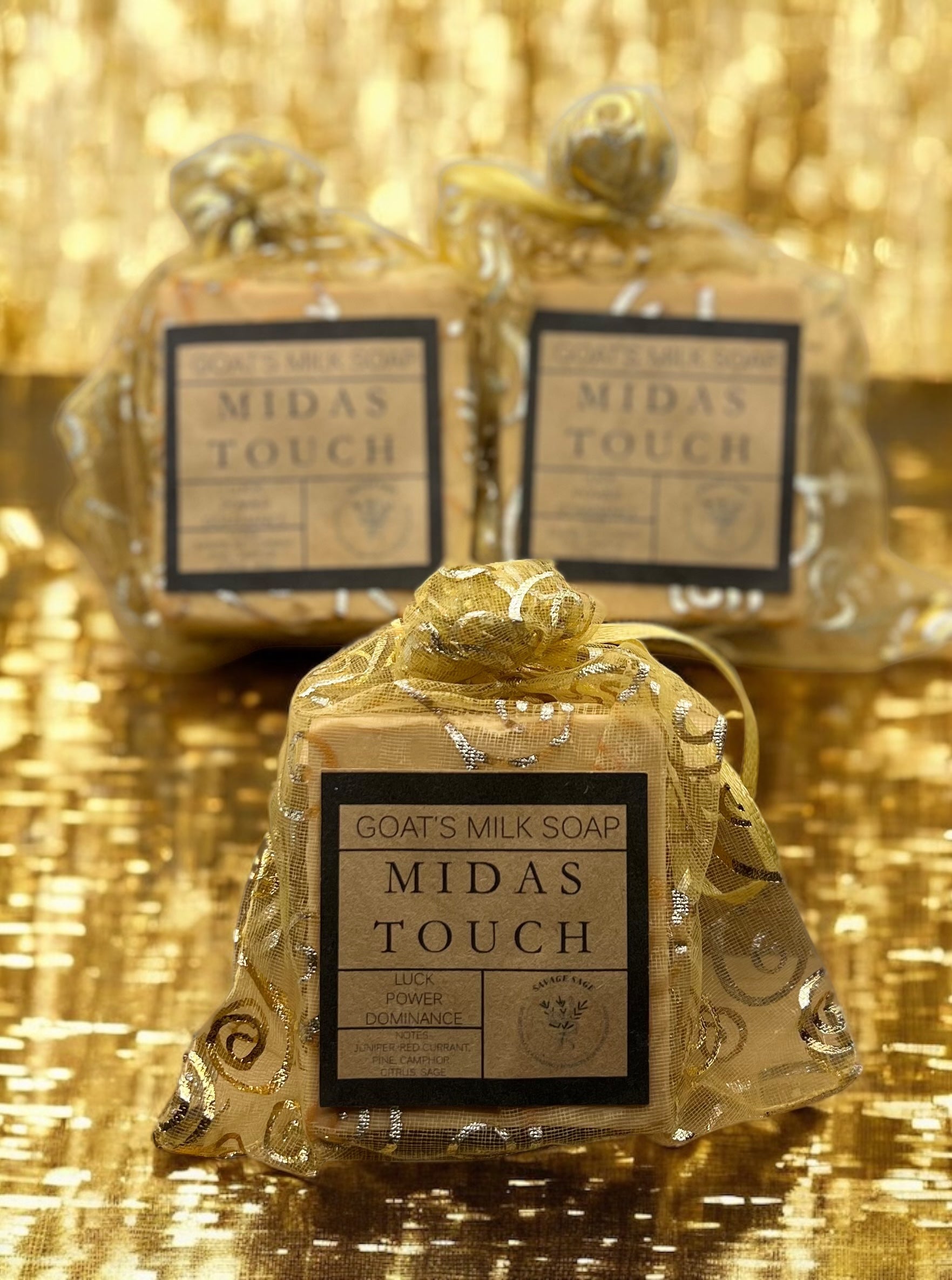 Midas Touch is the essence of luck, power, and dominance—a bold, commanding fragrance that leaves an undeniable mark of success. It opens with the crisp bite of juniper and zesty citrus, an electrifying combination that awakens the senses and signals fortune’s favor. The richness of red currant adds a touch of opulence, its deep, tart sweetness symbolizing wealth and prestige. At its heart, sage and camphor create an aura of wisdom and authority, their cool, herbal intensity sharpening focus and strengthening resolve. As the scent settles, the grounding presence of pine lingers, sturdy and unshakable, reinforcing a sense of unstoppable ambition. Midas Touch is a statement of power, magnetism, and the golden hand of destiny.